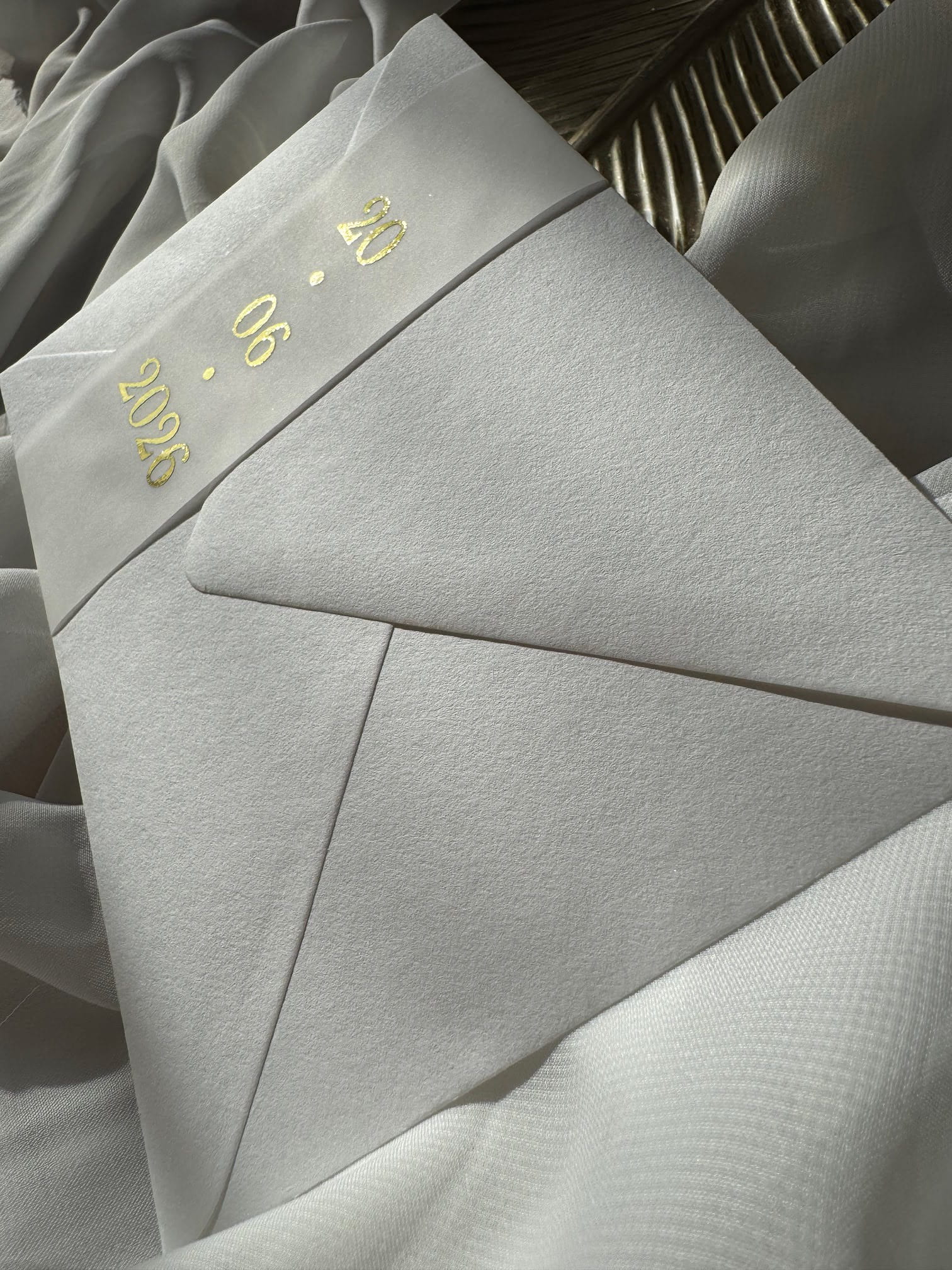 Zaproszenie ślubne „Golden Grace” to połączenie klasyki i luksusu. Wykonane na kremowym papierze 250 g z użyciem techniki hot-stampingu, zachwyca subtelnym złoceniem, które dodaje całości blasku. To idealna propozycja dla par, które cenią minimalizm, elegancję i najwyższą jakość wykonania.