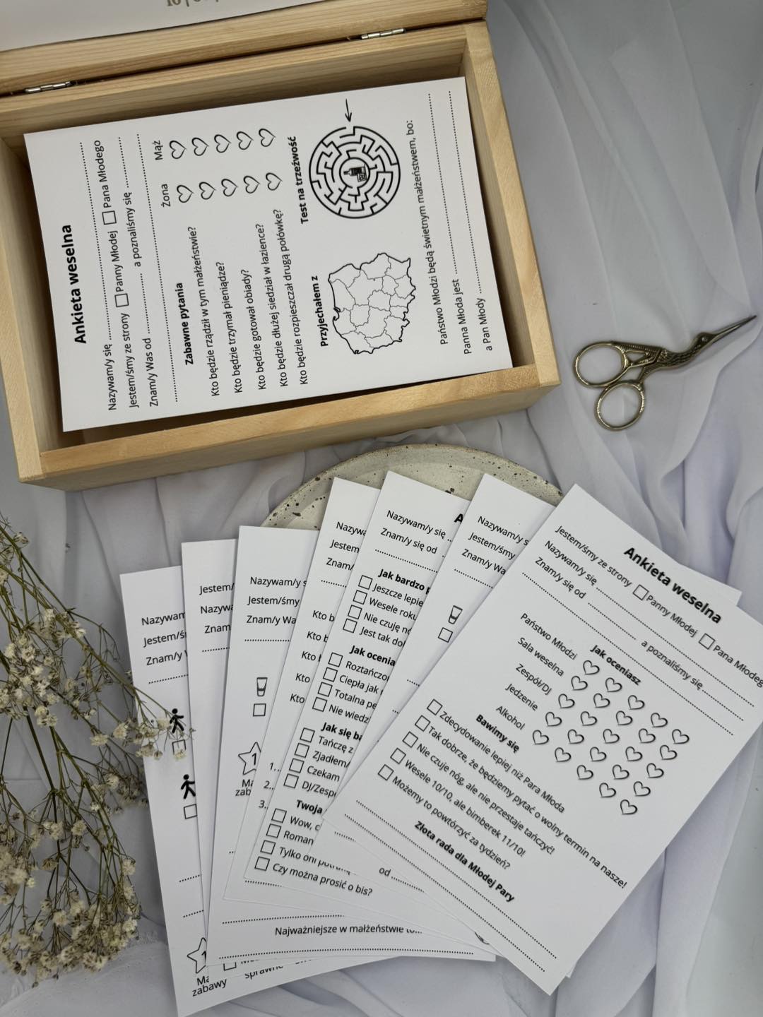 - ✔ 50 ankiet weselnych na papierze 250 g/m²