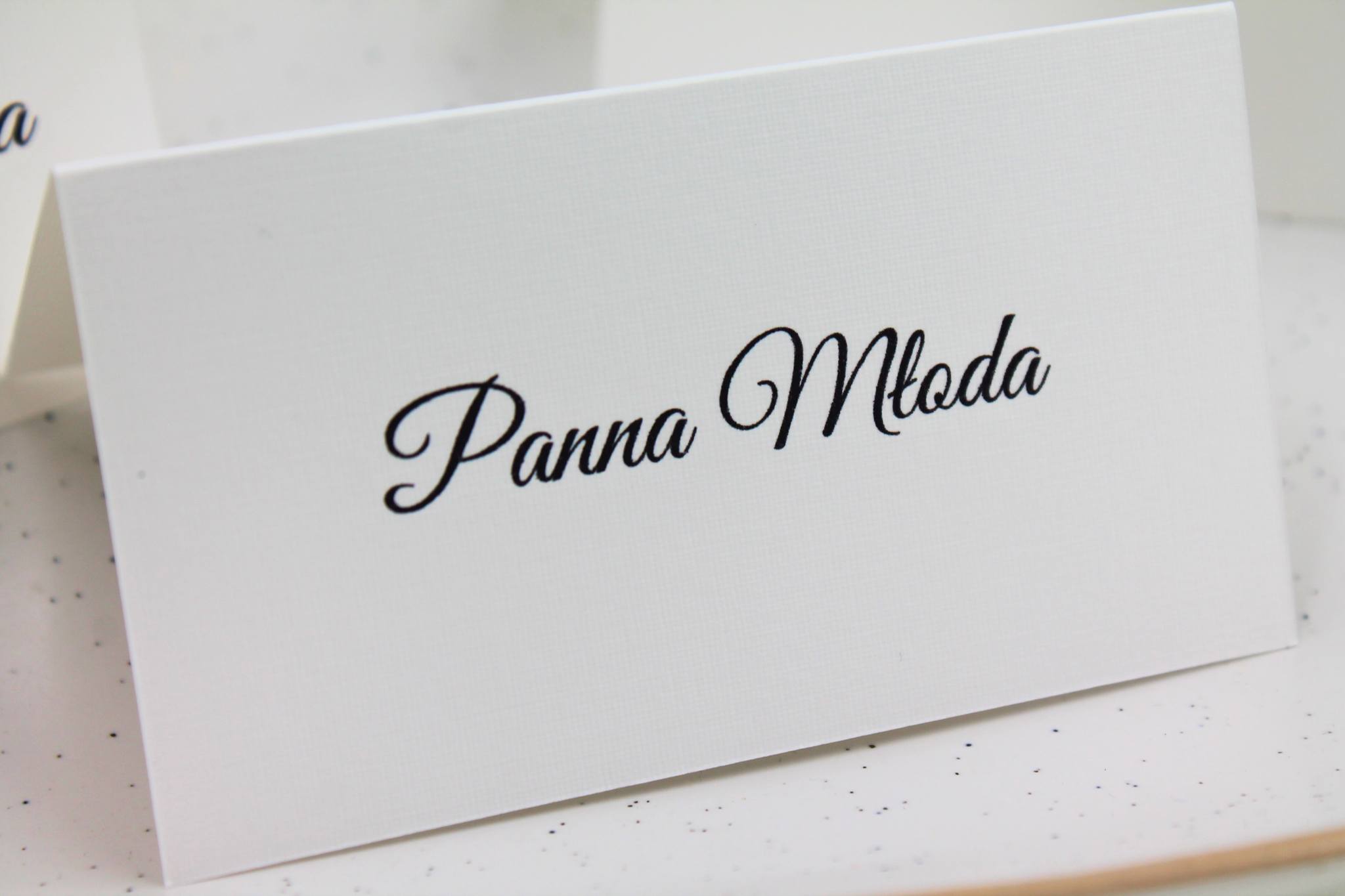 Klasyczne winietki wykonane są z białego, fakturowanego papieru 250 g/m². Ich minimalistyczny design sprawia, że pasują zarówno do wystawnych wesel glamour, jak i do przyjęć w stylu rustykalnym.