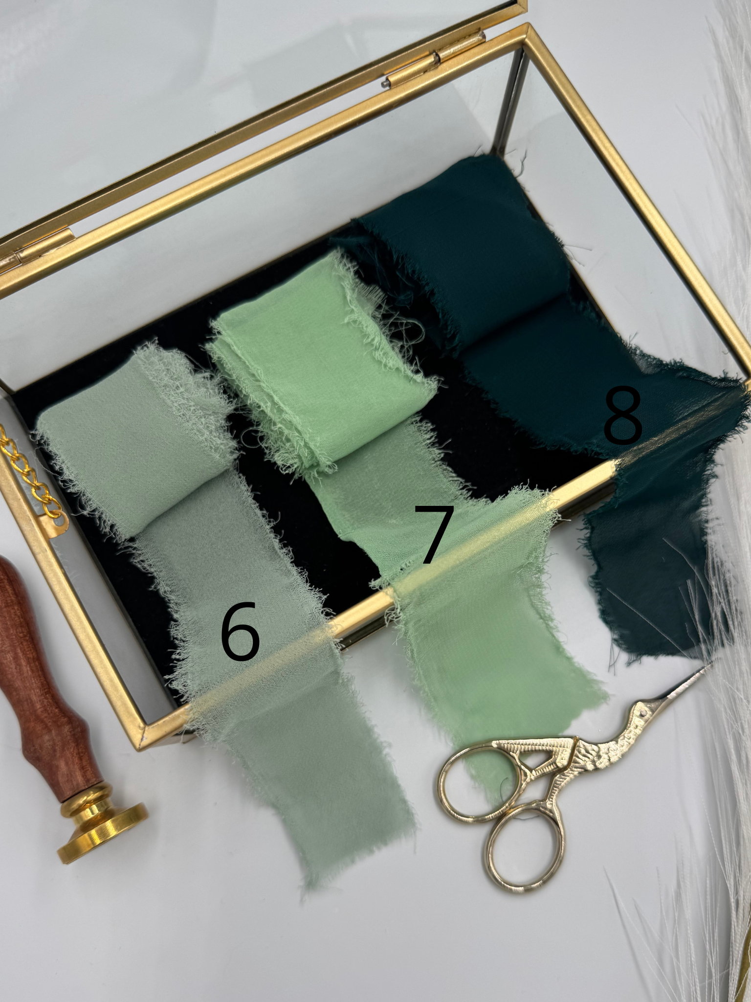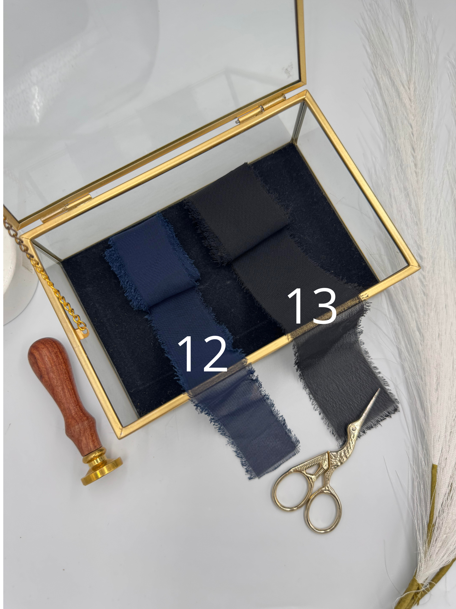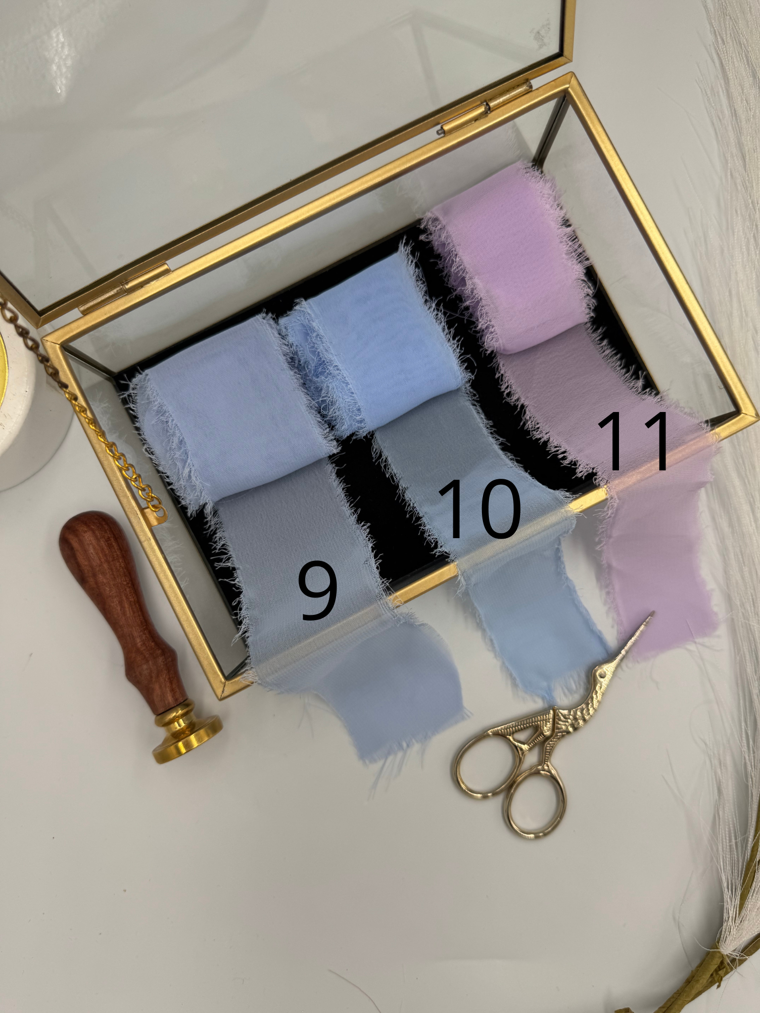 Winietki wykonane są z białego, gładkiego papieru 240 g/m², który zapewnia elegancję i trwałość. Każda z nich zdobiona jest szyfonową wstążką, nadającą im delikatności i romantycznego uroku.