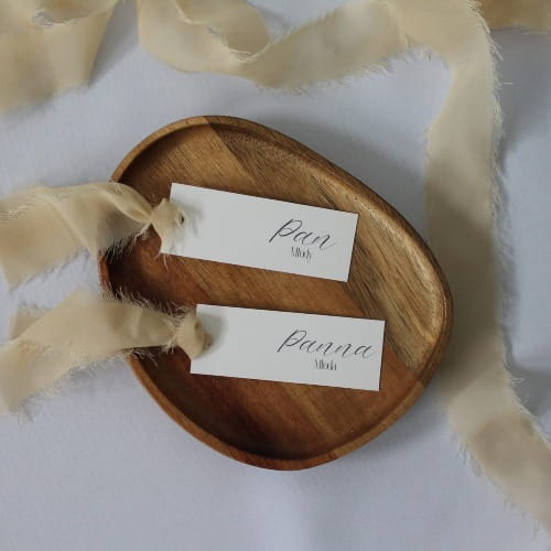 Każda winietka jest drukowana z imieniem i nazwiskiem gościa. Dzięki temu zyskujesz eleganckie i praktyczne oznaczenie miejsc, a całość pozostaje spójna ze stylistyką wesela.