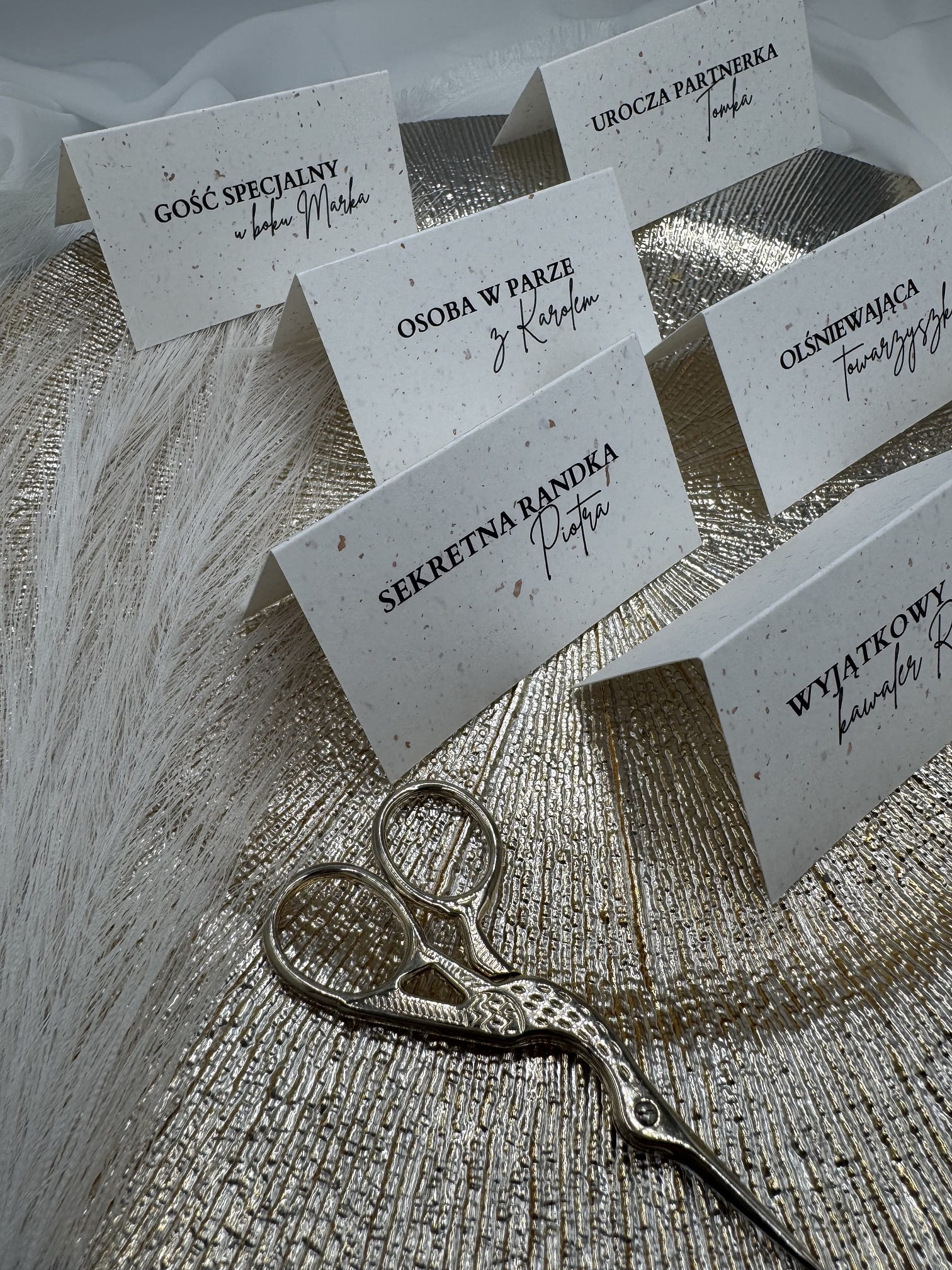 Podaj imiona i nazwiska gości, a my przygotujemy projekt specjalnie dla Ciebie. Dzięki personalizacji każda winietka będzie wyjątkowa, a goście poczują się wyróżnieni już od pierwszych chwil wesela.