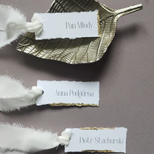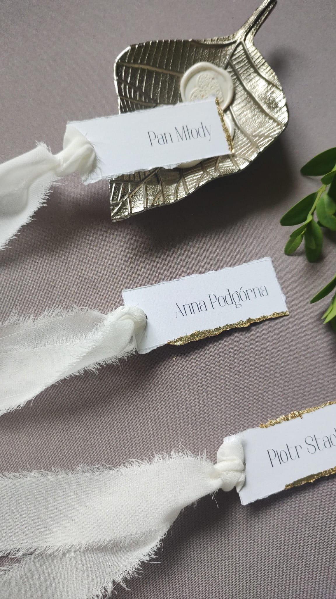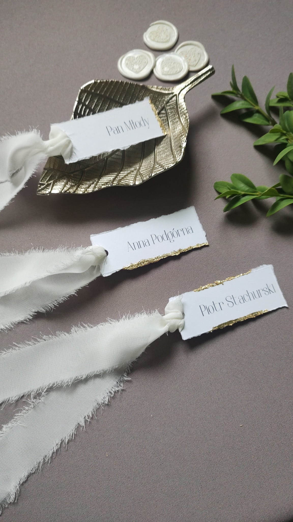 Minimalistyczna elegancja, szyfonowa wstążka i ręczne złocenie – poznaj nasze winietki ślubne, które oczarują Twoich gości od pierwszego wejrzenia. To połączenie delikatności, luksusu i nowoczesnego designu, idealnie wpisujące się w trendy weselne 2025 roku.