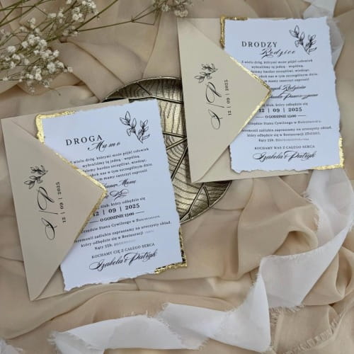 Ekskluzywne zaproszenie dla rodziców – ręcznie robione, złocone, romantyczne to wyjątkowy sposób, aby podziękować im za miłość i obecność w tym ważnym dniu. Starannie zaprojektowane, wykonane ręcznie i zdobione złoceniami, stanie się pamiątką na całe życie.