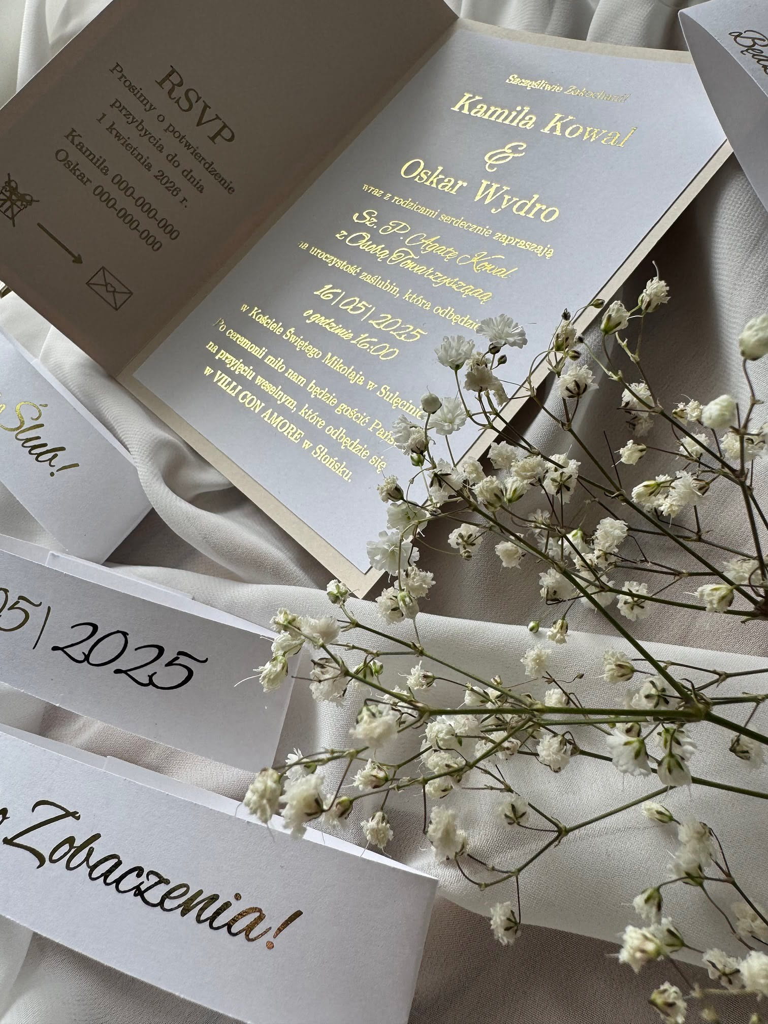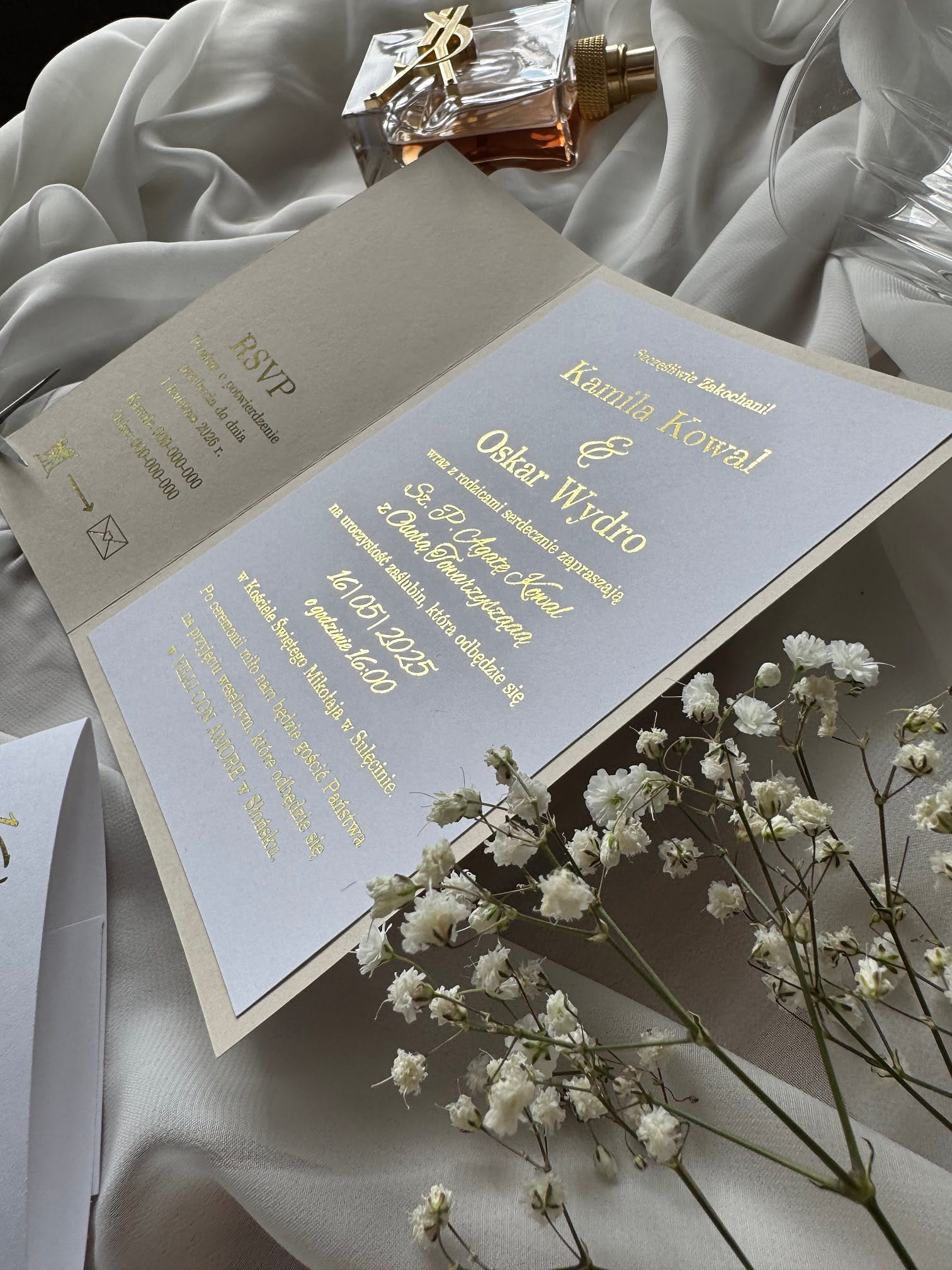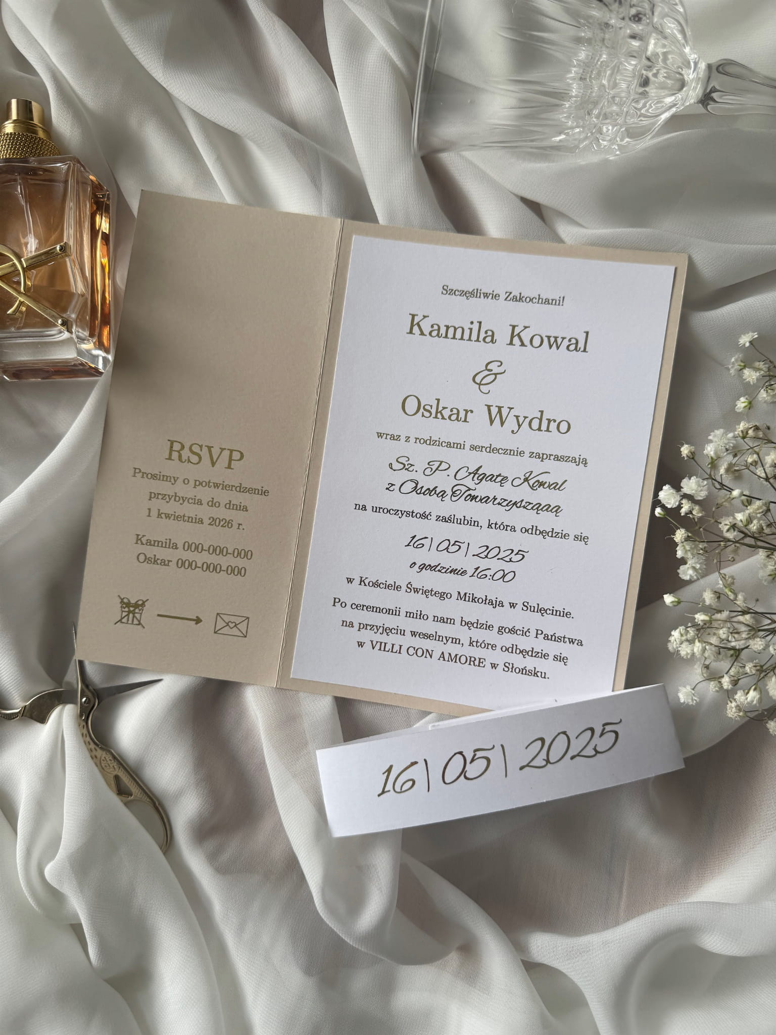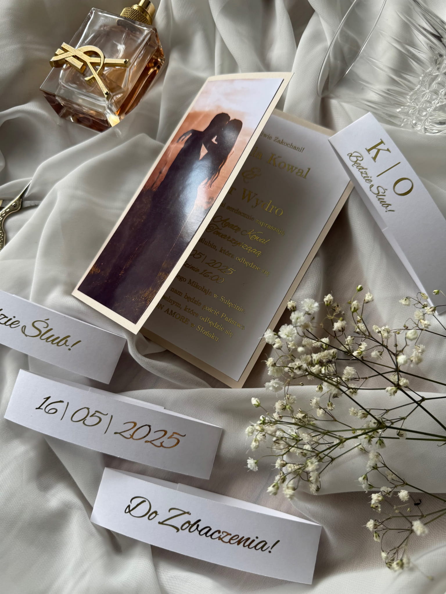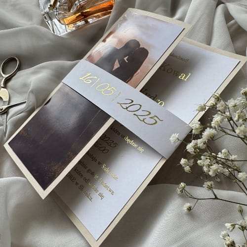 - Forma: zaproszenie folderowe z opaską